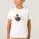 The t-shirt feels and looks great quality, a good thick cotton. It will be a little big for my son, but that means he will be able to wear it and not out grow it too soon. The print was as described on the order when personalised. True size, shape and colour T-shirt- thanks.