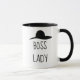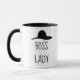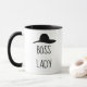 Minimalist "BOSS LADY" quoted typography mug with lady hat.