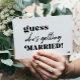 Simple black and white trendy bold typography wedding invitation with a funny "guess who's getting married" modern quote script.