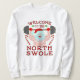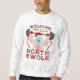 Santa Claus isn't messing around with the cookies anymore. This year, he's lifting weights instead of lifting glasses of milk. This funny Ugly Christmas Sweater shows a buff, shirtless Santa lifting a barbell in his gloved hands. He's surrounded by mistletoe and candy canes, and the text says "Welcome to the North Swole."