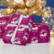 Wrapping paper with a humourous design. A sleeping uncorn with a fancy mane and tail. Deocrated with a trio of stars. A rainbow arched overhead. A circular wreath made up of clouds, hearts and flowers for additional girly flair. Typography says Magical AF. Humourous and cute. The background is a dark pink cerise colour.