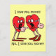 I love you more! Funny Valentine's Day t-shirts, cards and valentine gifts for lovers. Humourous t-shirts for lovers, couples and friends. Hilarious hearts arguing over who loves each other more.