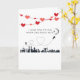 This funny card features a minimalist design of an airplane flying over a city leaving heart contrails as it soars towards the moon. Above the illustration is a funny saying "I love you to the moon and back, but..." Open the card to view the humorous response "I'd prefer a direct flight! Happy Valentine's Day". Personalize it with your specific romantic message or use our default funny one!