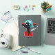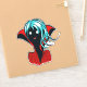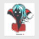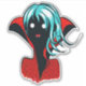 Vampire girl sticker with a digital illustration of a funny dark skinned undead character with glowing eyes, blue hair, fans and vibrant red cape.