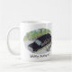 Funny Viking Funeral Mug. A hearse drives down the road with oars sticking out the windows during a Viking Funeral. Great gift for fans of all things Viking. Great gift for Viking lovers. Funny gift about Vikings and funerals and death.