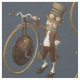 A humourous take on what a steampunked penny farthing may look like. Featuring my illustration, this little chap ready to mount the bicycle looks just the part in his vintage style riding gear. The background colour can be changed to any shade you like so is perfect to create your own steampunk inspired sewing projects.
