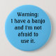This button reads, "Warning: I have a banjo, and I'm not afraid to use it." Banjo players, and other bluegrass fans and musicians will like this one. Blue background.