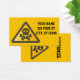 Funny Warning Sign to customise, personalise by changing to your name on any background colour