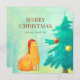 Personalised funny watercolor Christmas cards featuring a fat cat wearing a Santa Claus hat and sitting in front of a Christmas tree. Perfect Christmas card for any cat lover.