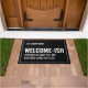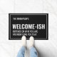 Add some tongue-in-cheek humour to your entry with this fun doormat. Words read "Welcome-ish" and "Depends on who you are and how long you stay." Personalise it with your own family name or if you don't wish to have your name, simple delete that text. Customise the colour of the background to match your own aesthetic by selecting your own background colour from within the design tool!