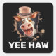 A fun, hilarious and cute graphic of the face of a brown and white cow peeking through a tear in paper. It has its mouth open in shock and its eyes are wide as saucers. The words "yee haw" appear below the graphic in white and the black background may be changed to any colour of your choice. This adorable country and western farm animal design is ideal for farmers, cow lovers or for any surprise western theme birthday, retirement or graudation celebration you may be hosting.