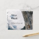 Change of address postcard shows a house perched on the side of a large, high, mountain cliff. The front text reads "We've Moved" and "We look forward to your visit" over a cloudy background. The back text includes the new address and contact information, which can be customised and personalised.