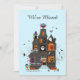 Change of address card shows "We've Moved" above a haunted house full of Halloween characters, including a vampire, witch, ghost, devil, mummy, grim reaper, monster, and pumpkins. Customise the new address and details on the back of the card.