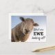 Funny sheep photo on a postcard is perfect for those with a barnyard sense of humour! Design features a close up photo of a sheep. The sheep is looking directly at the camera. To the right of the sheep is text in black font that says What are EWE looking at? This sassy sheep with an attitude makes for a great postcard design.