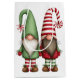 "Add a touch of charm to your holiday gifting with this whimsical gnome gift bag! Featuring two sweet gnomes in green and red striped hats with candy-cane accents, this playful clip-art illustration pops beautifully against a crisp white background. It's cute, festive, and perfect for Christmas gifts, winter parties, or anyone who loves gnomes!"