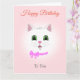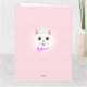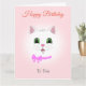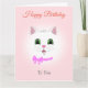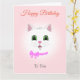 Funny cute happy festive white cat face on light pink Birthday Card. Text can be personalised for a relative, friend, sister. teacher, and more.