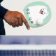 Fluffy White Pomeranian with Eyes Open and Eyes Closed on Double-Sided Ping Pong Paddle.
