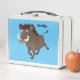 This is a standard metal lunchbox that appears to work just fine. We designed this box ourselves with an uploaded photo and custom text on the front and back. It looks absolutely beautiful except the front of the lunchbox is not centered like it shows in the photo. The print borders don't align with the inset flat part of the box where the preview photo online showed it perfectly centered in there. The back looks nice and centered though.