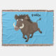 Funny wild boar razorback cartoon illustration throw blanket