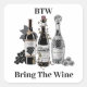 Add a touch of humour to your belongings with this fun sticker. Featuring three stylishly illustrated wine bottles in varying styles, accompanied by the playful phrase “BTW: Bring The Wine”. Perfect for wine lovers to decorate laptops, water bottles, notebooks, or gift to fellow wine enthusiasts.