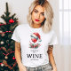 Infuse your Holiday wardrobe with a touch of humour and witty elegance this season. Our women's Christmas t-shirt, adorned with a cheery watercolor illustration of a festive wine glass, carries the hilarious quote - 'Dreaming of a wine Christmas'. Perfect for those who love a good laugh and a great glass of wine. Elevate your festive spirit, and let the merriment begin, one sip at a time!