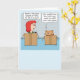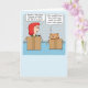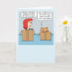 Here's a funny birthday card featuring a woman drinking a glass of wine asking her cat about the ideal length of time to sit in a box. It's indefinitely for the cat. For the woman, it's until she needs a refill.