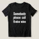 It's an EMERGENCY! Somebody please call 9 wine wine! This funny wine-lover tshirt gets you noticed. It's a great party shirt and conversation starter. It may even get you a glass of wine! Shown here in white bold text on a black tshirt. Other shirt styles and colours are available. Makes a great gift!