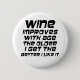 Funny wine joke quote gifts humour sayings buttons. Wine improves with age the older I get the better I like it. Funny black and white button gift idea.