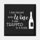 This funny wine design is great for the wine lover in your life. Features a black and white design, and "I just rescued some wine. It was trapped in a bottle." text. At the bottom of the design, is customisable text for the recipient's name.