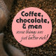 Funny womens novelty gifts joke coffeee magnets for her. Coffee, chocolate & men some things are just better rich! Design by Wise Crack gifts. Cute, modern and trendy script typography with black font and pink background. This would make a hilarious birthday present for a mum, friend or coworker.