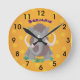 Funny woolly mammoth cartoon illustration round clock