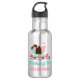 A water bottle with a funny saying - Working out until ice cream. Asweet ice cream theme. Illustrated with a chocolate ice cream bar, 3-scoop sundae with a cherry on top, and a strawberry float with whipped cream. Little strawberries and cherries along the bottom.