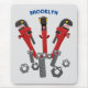 Funny tool humour featuring three hungry wrench monsters chasing after nuts and bolts.