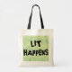 "Lit Happens" is a humourous play-on-words for readers and writers. In this design, it's done in a grungy, black font on a distressed yellow notebook paper background that has ink spots. It's the perfect funny design for you or an author / librarian friend.