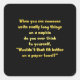 Yellow text humorously questions writing long notes on napkins, suggesting paper towels might be more suitable. The message is set against a plain black background, making the text stand out.