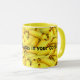 Love coffee? Love bananas? Then this is the perfect coffee mug for you! It's a cool yellow coffee mug with a fun yellow bananas pattern and the saying 'How many bananas in your coffee?'