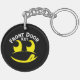 Funny Yellow Smiley Face with Tongue Out on Black Key Ring