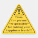 Bring a playful twist to your gifts or envelopes with this bright yellow “Warning Sign” sticker! Shaped like a caution triangle, it reads “From the person responsible for raising your happiness levels” — perfect for sealing surprise gifts, envelopes with cash or tickets, or simply adding a cheeky touch to any package. Fun, lighthearted, and sure to make anyone smile before they even open the gift.