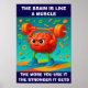 The more a student uses their brain, the stronger it becomes. This design shows a big-brain exercising.
