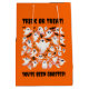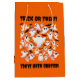 Whoa! That's going to be a whole lotta candy! If you find Hallowe'en to be one of the most fun-filled days of the year, then this whimsical gift bag, which features the punny observation "You've Been Ghosted!" styled in a creepy font in white with cute AI-generated crowd of ghosts celebrating their big night on a pumpkin orange background--is a great way to say trick or treat at the door on the spookiest time of the year (and use a real groaner)!