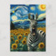 Funny Zebra in faux Van Gogh Sunflower Field Postcard