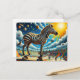 Funny Zebra Skateboarding Surreal Colourful Postcard
