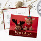 Fur La La Red Gold Modern Pet Christmas Photo Modern Real Foil Holiday Postcard. Send Holiday Greetings to your loved ones with this festive and Modern Holiday Card. All the texts are pre-arranged for you to personalise easily and quickly with your own details. Happy Holidays!