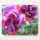 A gorgeous digital photograph of two fushia flowers, with a bright pink almost leather like top and rich purple flower.