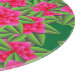 Digital graphic of deep fuchsia pink camellias and green leaves overlapping on a dark emerald green background, for a lush, tropical feeling