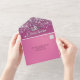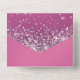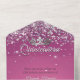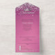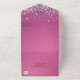 Pretty fushia pink Quinceañera birthday party all in one invitation, with graphics of silvery glitter and a silver tone crown. Personalise the custom text for your favourite girl's special day.