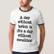 Great T-Shirt, looks cool, good thickness and fits well. Slightly lighter than expected, not pitch black, more of a faded black, but still looks good.