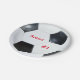 These sports themed black and white soccer ball paper plates or bowls are sure to be winners at any sports themed birthday party or watch party when personalised with a name and age or number. This classic soccer or futbol design with red text is a sporty design that any fan or player of soccer will love.
