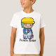 For the artist of tomorrow. Cute boy with green hair and yellow hat in purple-paint splattered overalls holding a paint cant and paint brush.