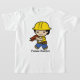 For the builder of tomorrow. Cute boy in a yellow hard hat and vest caring an I-beam. Text is customisable.